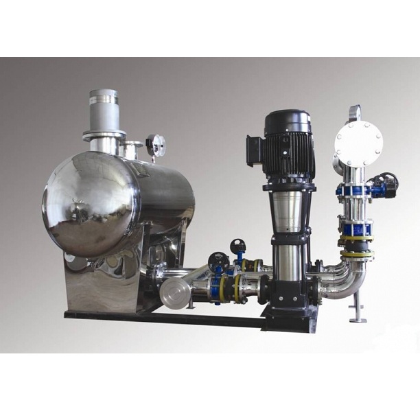 無負壓供水設備是通過穩流罐直接與市政管網連接,穩流罐另一端與加壓水泵連接,穩流罐上設置負壓抑製器與壓力傳感信號接收裝置,其目的在於當市政管網停水時,係統控製水泵停止運行,負壓抑製器抑製罐體內真空的產生,同時市政管網突然間水流增大時,罐體內部氣體不致於聚積影響設備供水性能;當市政管網來水能夠用戶供水需求時,加壓水泵啟動進行供水,並通過供水管路上設置的壓力傳感信號對水泵運行進行調控,調頻控製水泵的轉速並管路供水壓力能夠管網末端水具的出水壓力需求,水泵間調頻自動切換,供水管網供水壓力在一個定值間運行。